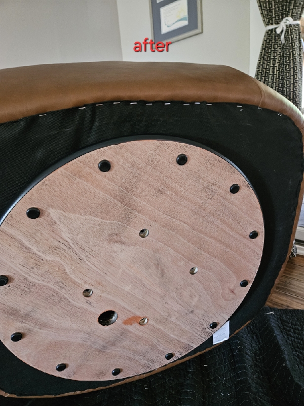 | Adjusted, aligned, and secured swivel chair. The braces holding swivel mechanism came loose. Reattached with screws and oiled bearings. Tested unit – unit is working as intended. Issues resolved, job complete. |
