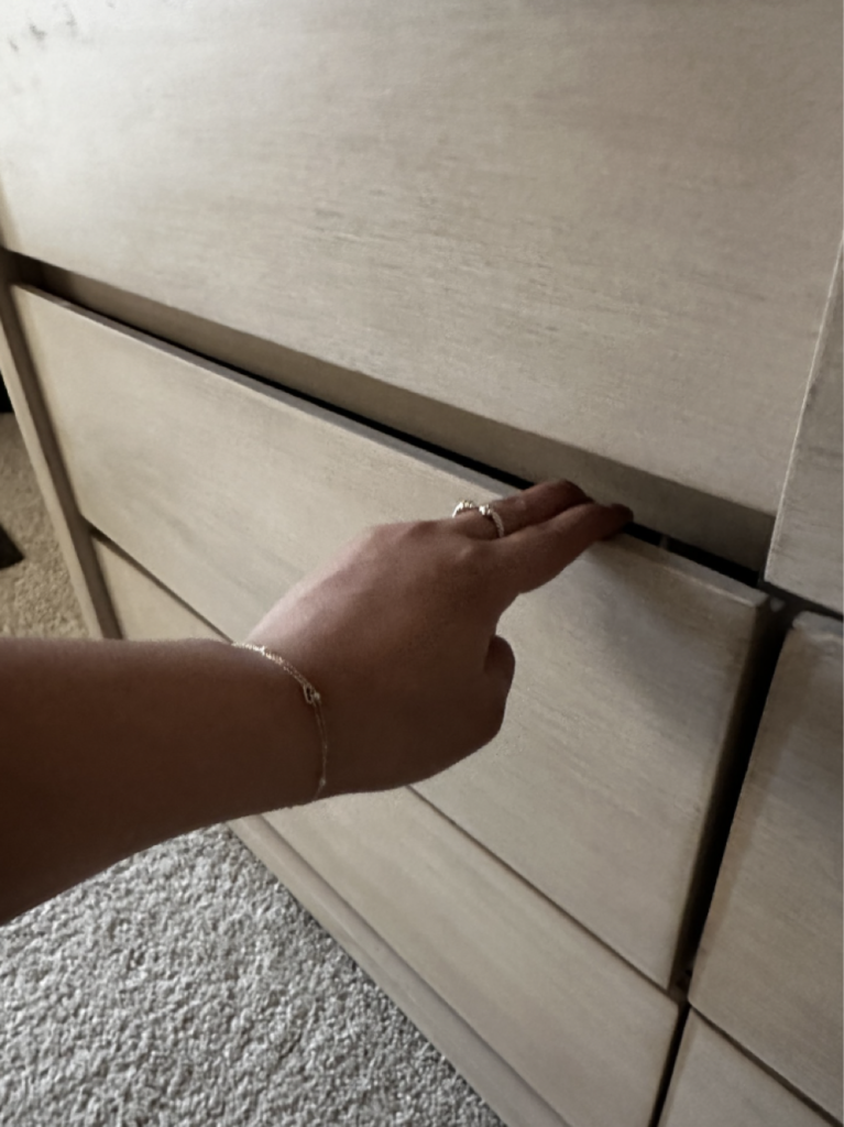ADJUST AND ALIGN DRAWERS ON DRESSER. CUSTOMER STATES THAT A FEW ARE HAVING ISSUES OPENING AND CLOSING.