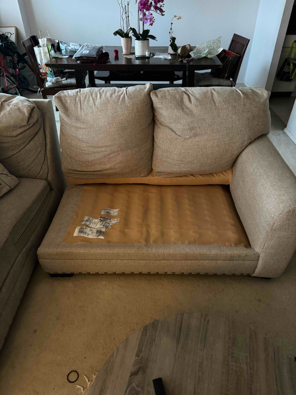 ADJUST AND SECURE SPRINGS ON SOFA. SOFA IS MAKING NOISE WHEN IN USE.
