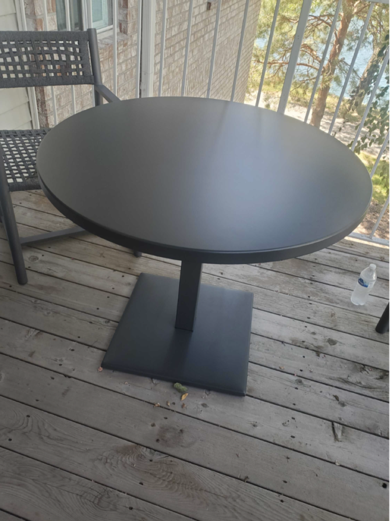 | INSTALL FELT PADS UNDERNEATH TOP AND ON TOP OF TABLE BASE TO ALLEVIATE TOP SPINNING. BRING FELT PADS WITH YOU. |
