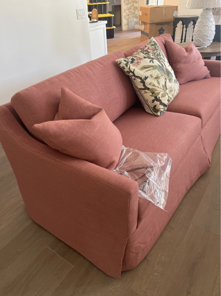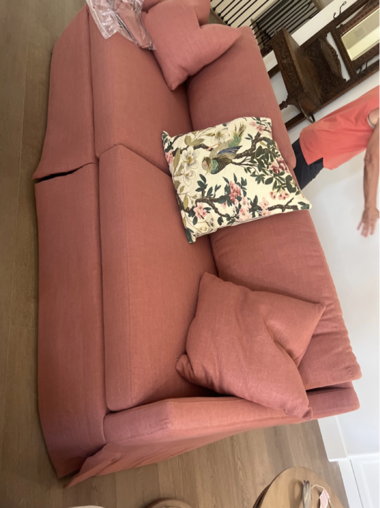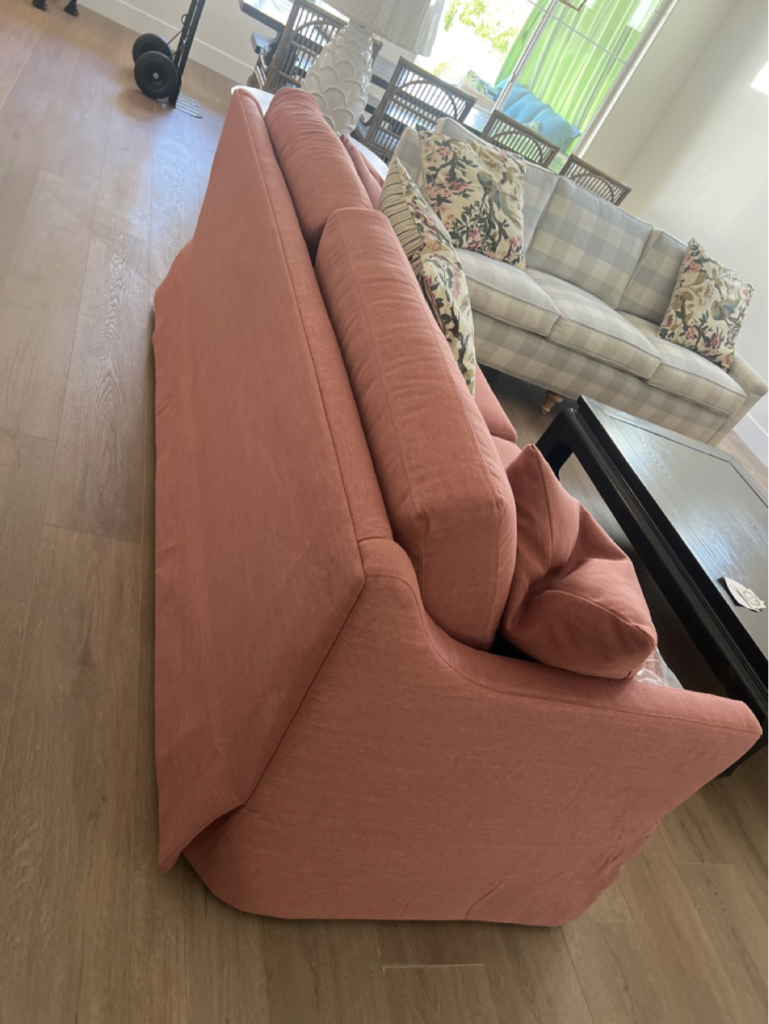 | Steamed skirt all the way around the unit, removing wrinkles and making the skirt lay evenly flat. Fluffed, aligned and steamed seats and fluffed backs. Issues resolved, job complete. |