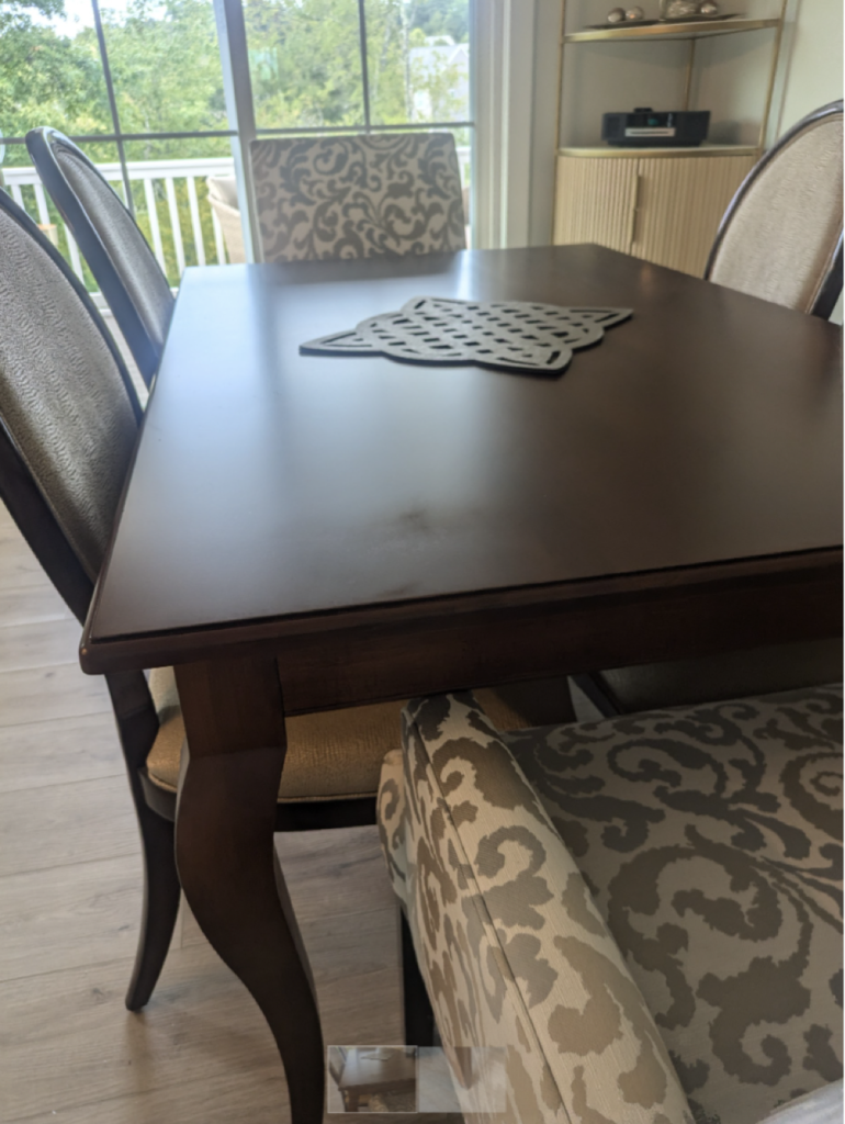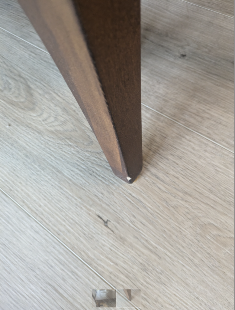 FILL AND TOUCH UP MISSING FINISH ON TABLE TOP AND CHIP IN LEG.