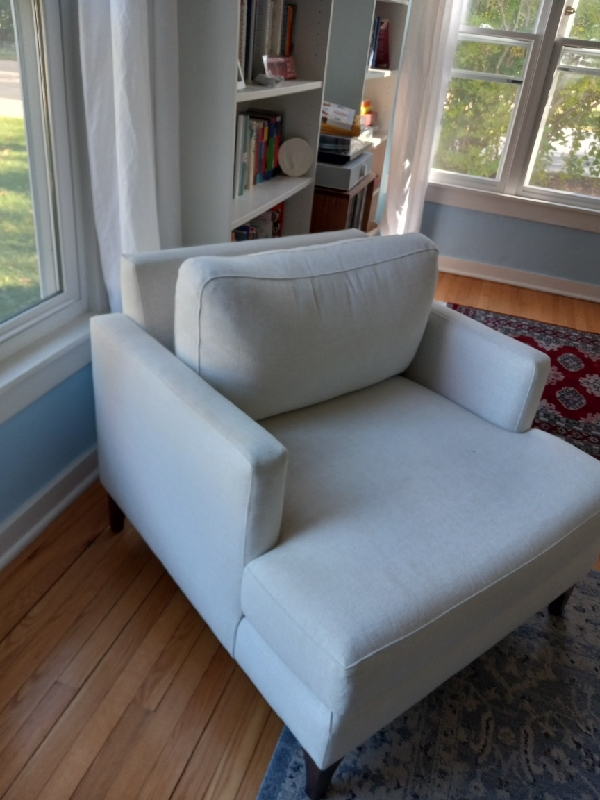 SPOT CLEAN BLACK MARKS ON BACK OF 2 CHAIRS. TEST A HIDDEN AREA FIRST, BRING BLOW DRYER.