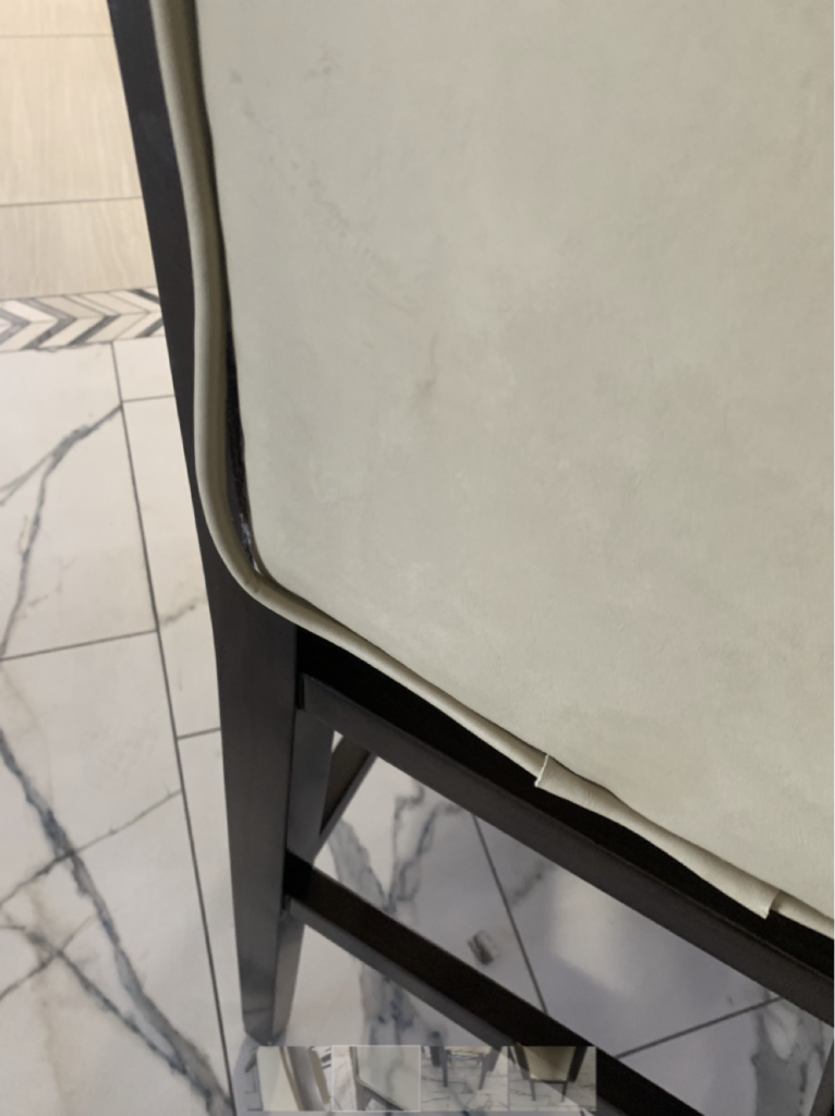 | Reattached welt on chairs and made sure welt was secure. Installed cambric on bottom of all chairs. Issues resolved, job complete. |