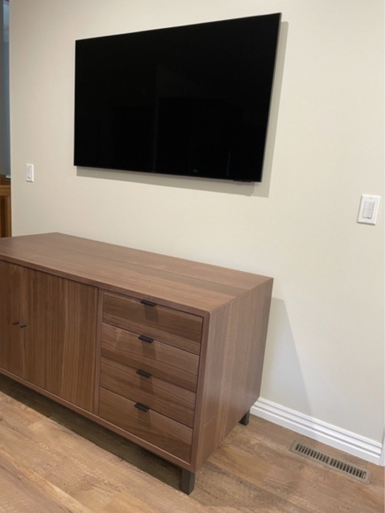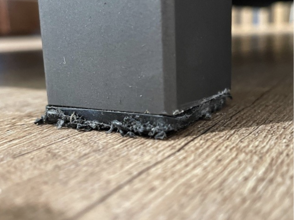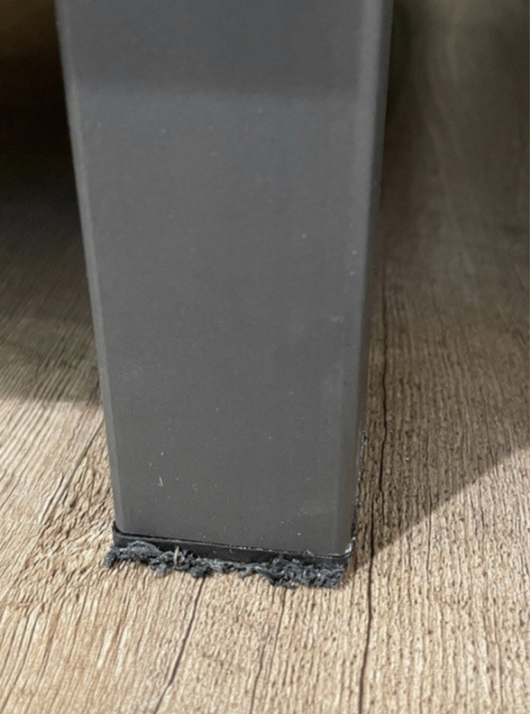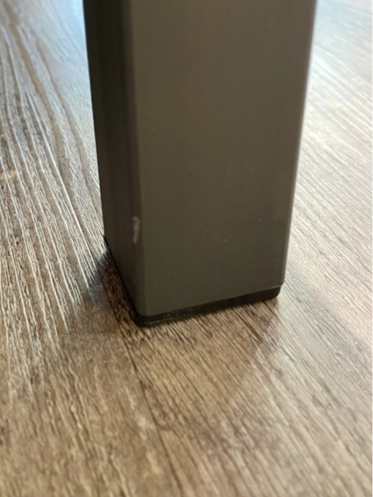 ADJUST AND ALIGN DRAWERS AND GLIDES ON CABINET. INSTALL FOOTCAPS ON UNIT, FOOTCAPS AT LOCATION. TOUCH UP METAL LEGS.