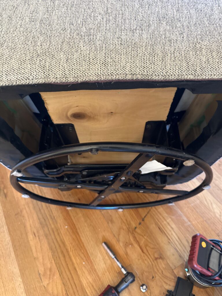 | Adjusted and aligned glider chair. Secured and tightened all bolts and lubricated. This resolved the squeaking and chair is working as intended. Additionally, the customer had a 2nd glider chair with the same issue. TUH office called Room & Board to confirm we could work on 2nd chair. 2nd chair was adjusted; tightened and secured bolts and lubricated. Issues resolved. |