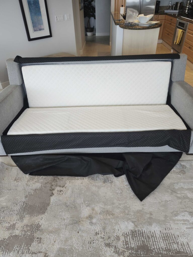 | REPLACE MECHANISM ON SLEEPER SOFA. MECHANISM AT LOCATION. TWO PERSON REPAIR. |