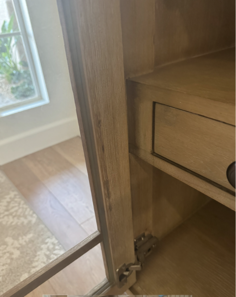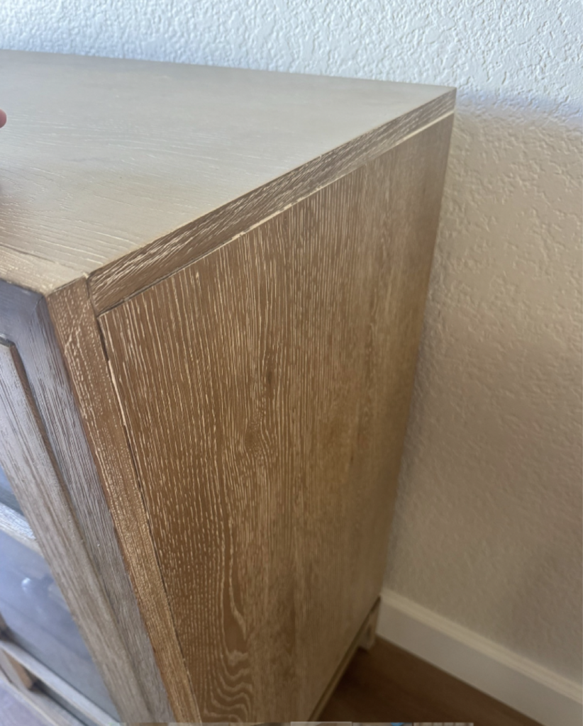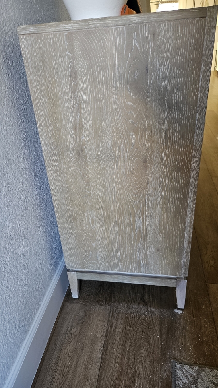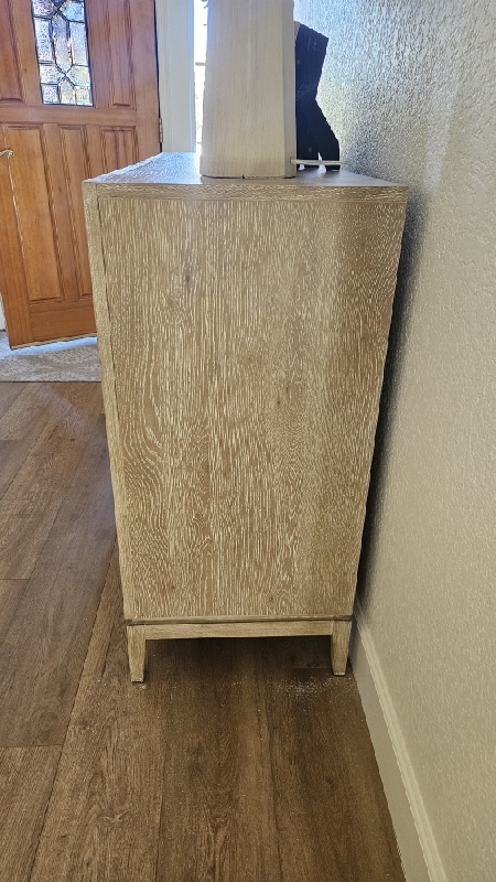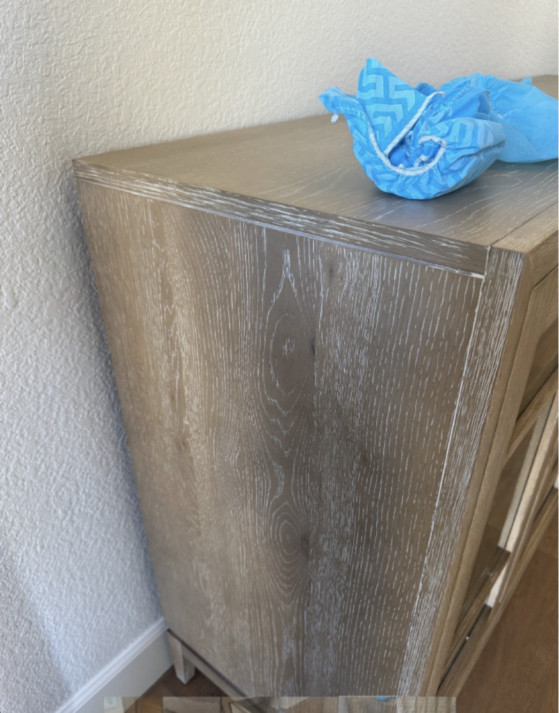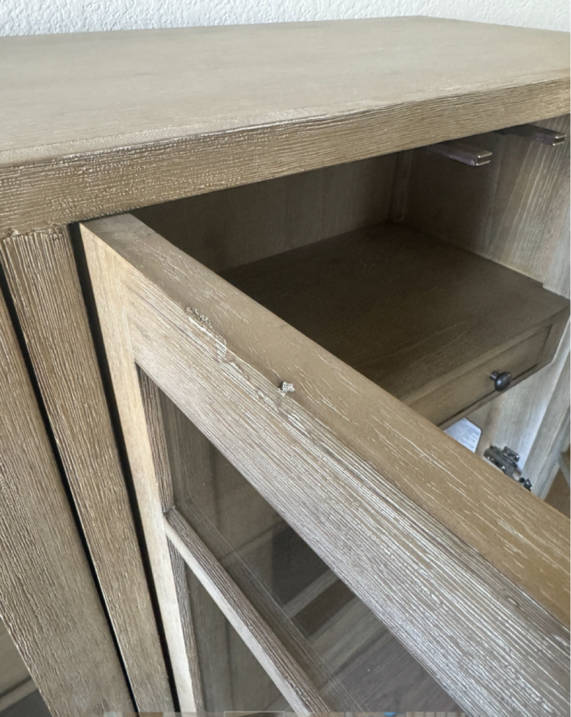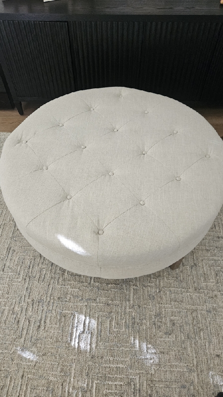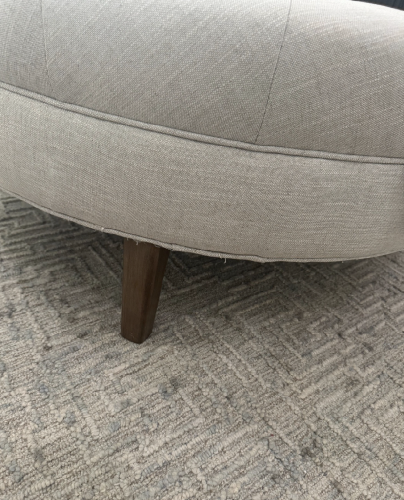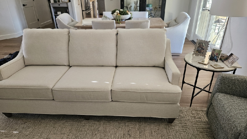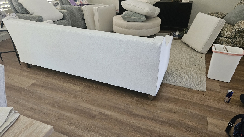 | Picked up and replaced outside back panel on sofa. Corrected outside back panel on 2 swivel chairs. Issues resolved, job complete. Additionally, replaced missing screw in table, filled and touched up cabinet, one door has a defect that could not be corrected, will need a new door to resolve issue, the customer was concerned with wrinkles in her ottoman, adjusted buttons on ottoman, this could not be resolved due to buttons not being in line causing the wrinkles. |