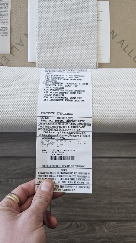 | PICK UP AND REPLACE LEGS ON CHAISE. LEGS AT ETHAN ALLEN WAREHOUSE. EXISTING LEGS DO NOT MATCH. |