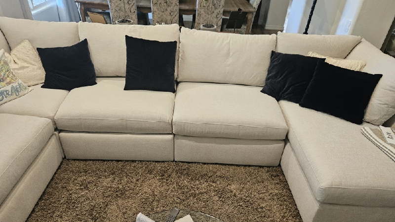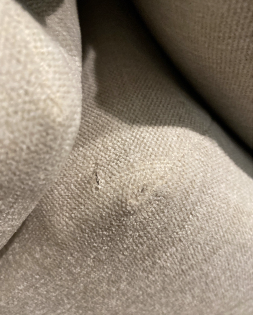 | Spot cleaned areas on sectional, stitched hole in fabric. Issues resolved, job complete. |