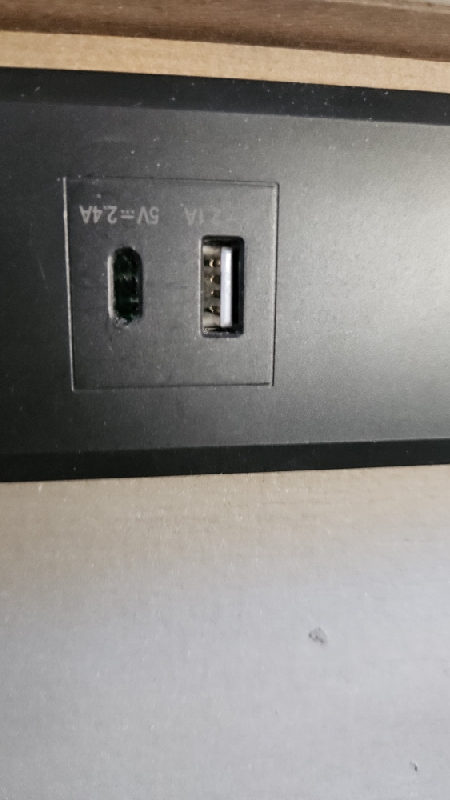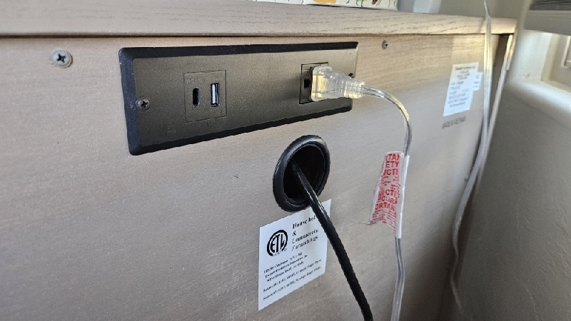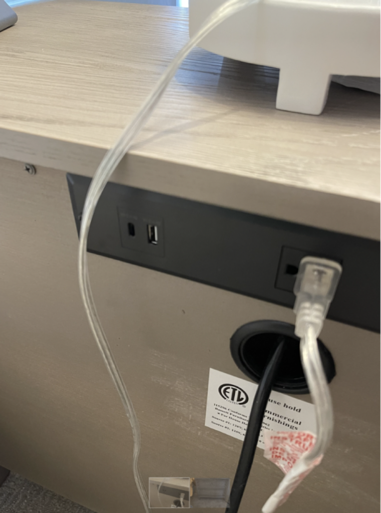 Inspected and secured connections on nightstand. Found that the slot for the usbc is missing the port and the circuit board can be seen where the port should be. this will need replace. A new power supply is needed to resolve the issue.