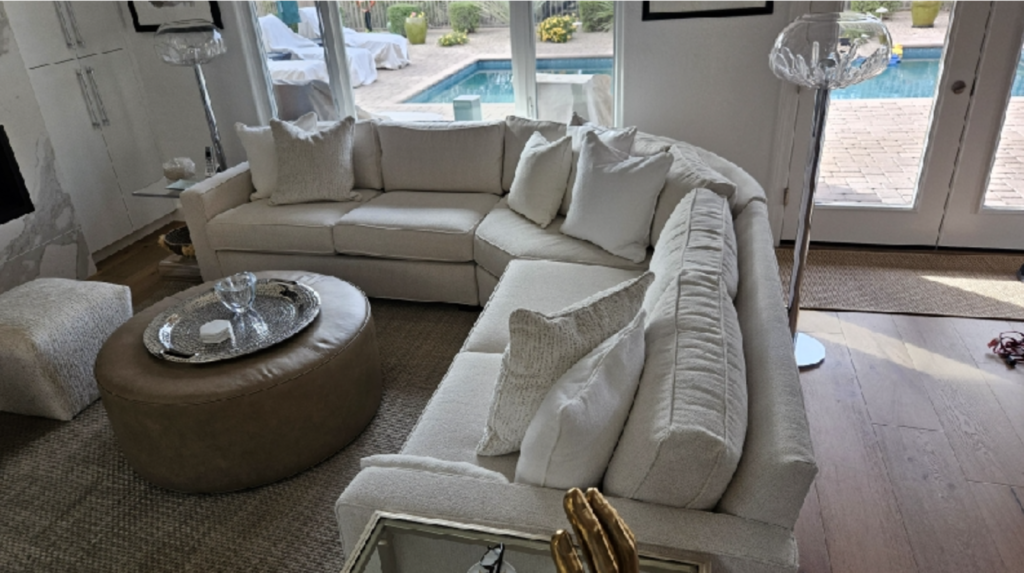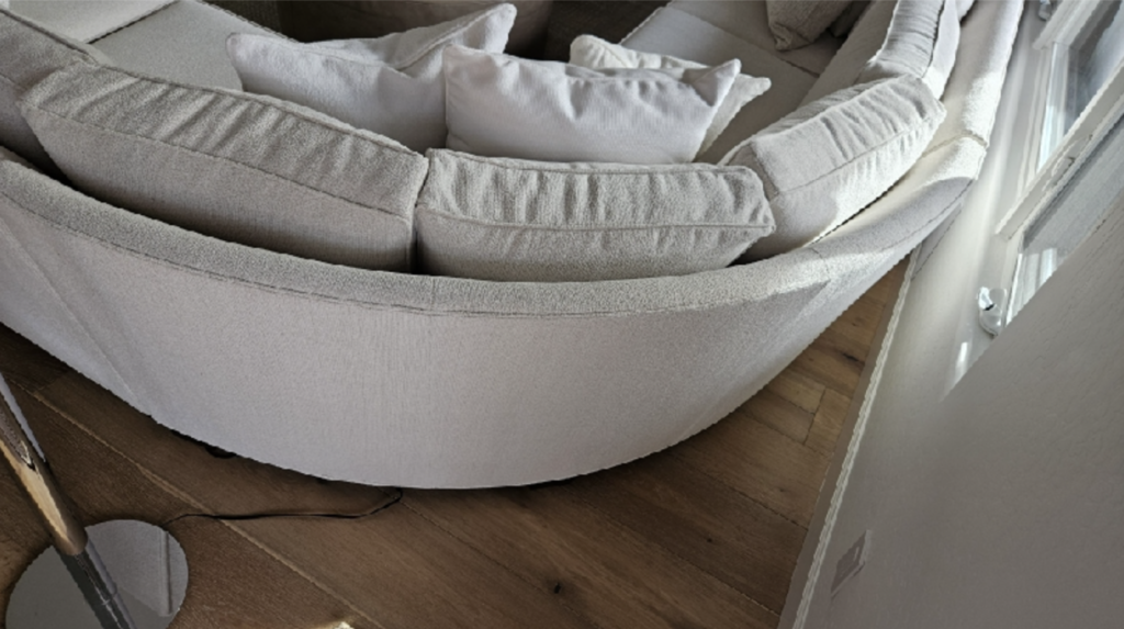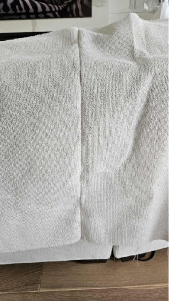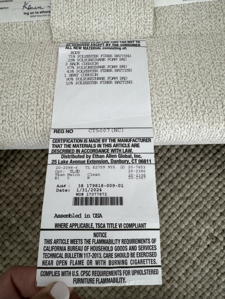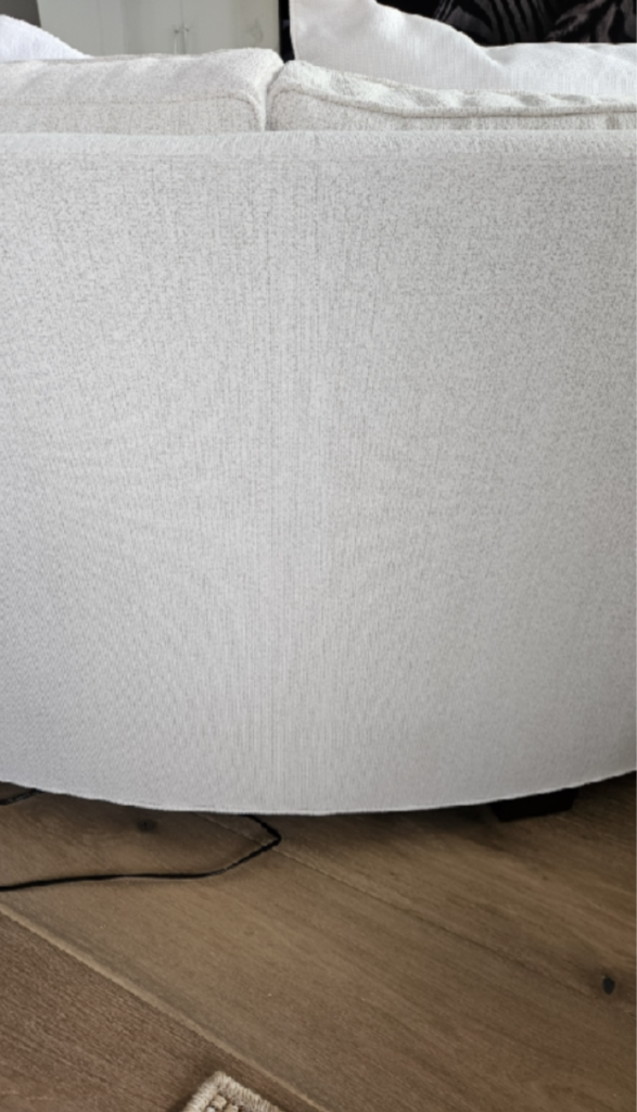 | PICK UP AND REPLACE BACK PANEL ON CURVED WEDGE PIECE OF SECTIONAL. PART AT ETHAN ALLEN WAREHOUSE. |