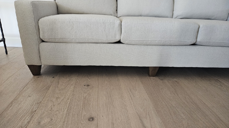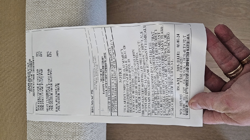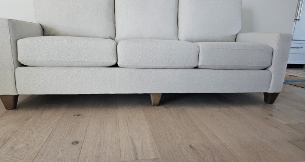 | PICK UP AND REPLACE LEGS ON SOFA. LEGS AT BASSETT SCOTTSDALE STORE. FLUFF AND ALIGN BACK CUSHIONS. ALIGN WELT. |