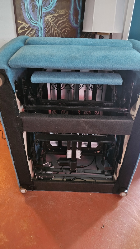 Adjust and align footrest on recliner. Headrest still operated, but foot portion does not. Check and test all connection. Advise in notes if parts are needed.