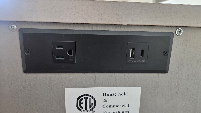 Removed and replaced power strip on nightstand. Tested all ports, all are working. Issue resolved, job complete.