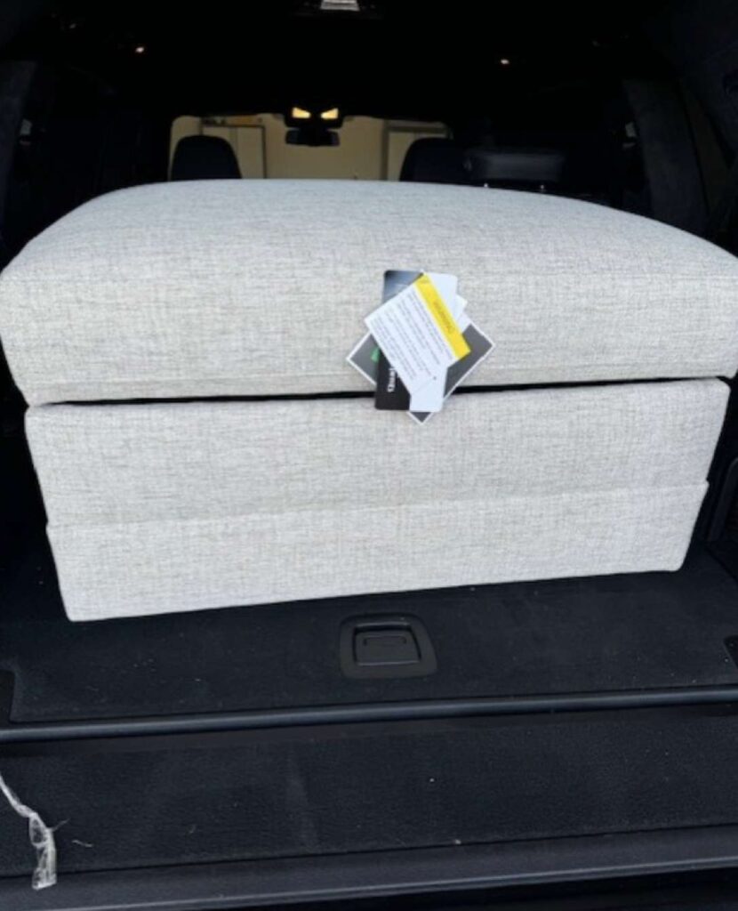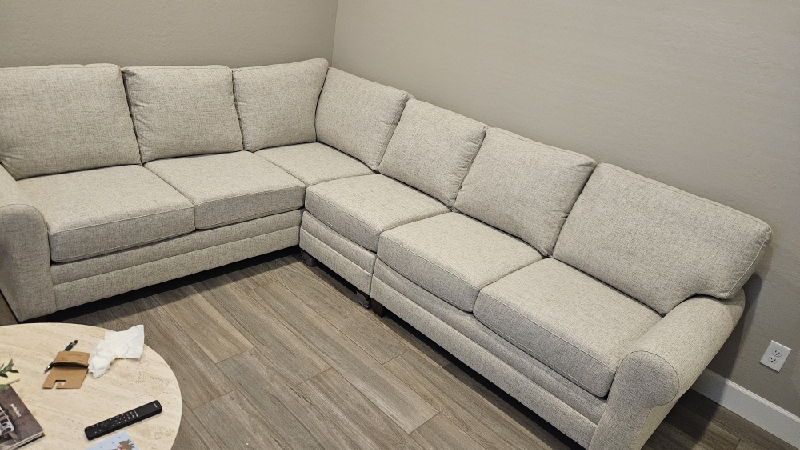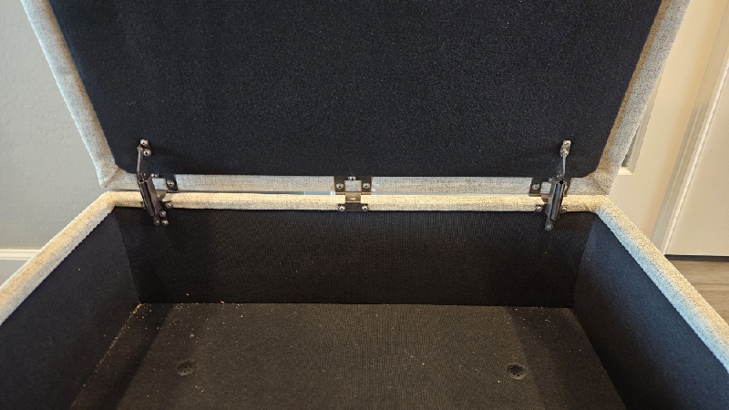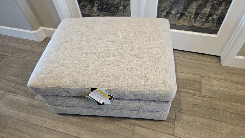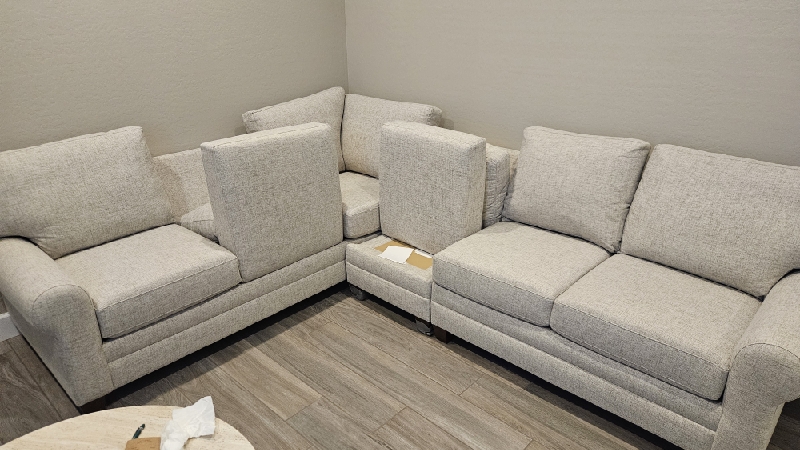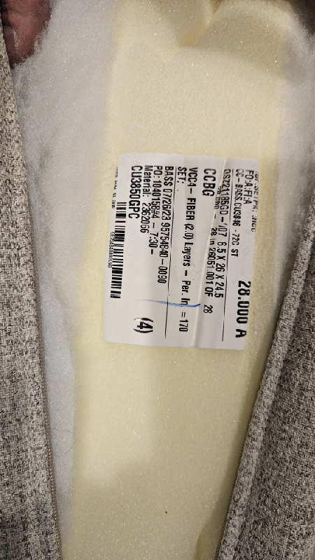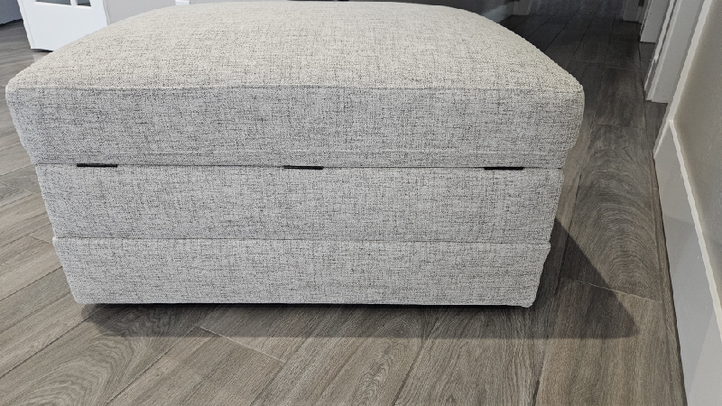 | Picked up and installed new top on ottoman. New top now opens all the way. The top does not stay open. Unit closes softer than before but the springs feel weak, and customer feels it should close softer than it does. Moving the spring up or down will not make it stronger. 2 cushions on sectional should be replaced as they do not have dacron on the front side of the cushion. This is causing the front of the cushion to be very flat and baggy. The 2 that need replaced can be seen standing in the photos. |