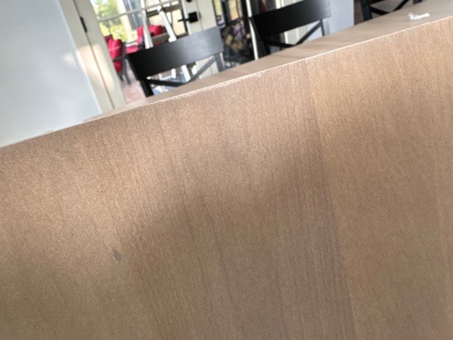 | Fill and touch up edges on leaf of able. Make sure color matches. Advise in reports notes if the missing finish is damage or distressing. |