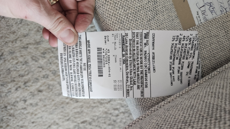 | Pick up and replace seat and back inserts on sectional. Parts at Ethan Allen warehouse. |