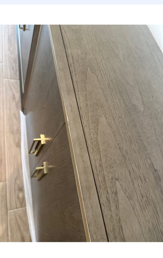 The blemish that you showed the tech the finish itself was lifting. That’s why it is lighter. We are going to reach out to Ethan Allen and let them know there was the blemish on top. The finish itself did not adhere to the piece in that location, and that is why it is lifting. If we can get the exact color match, we may be able to fix the lifting finish from the factory.