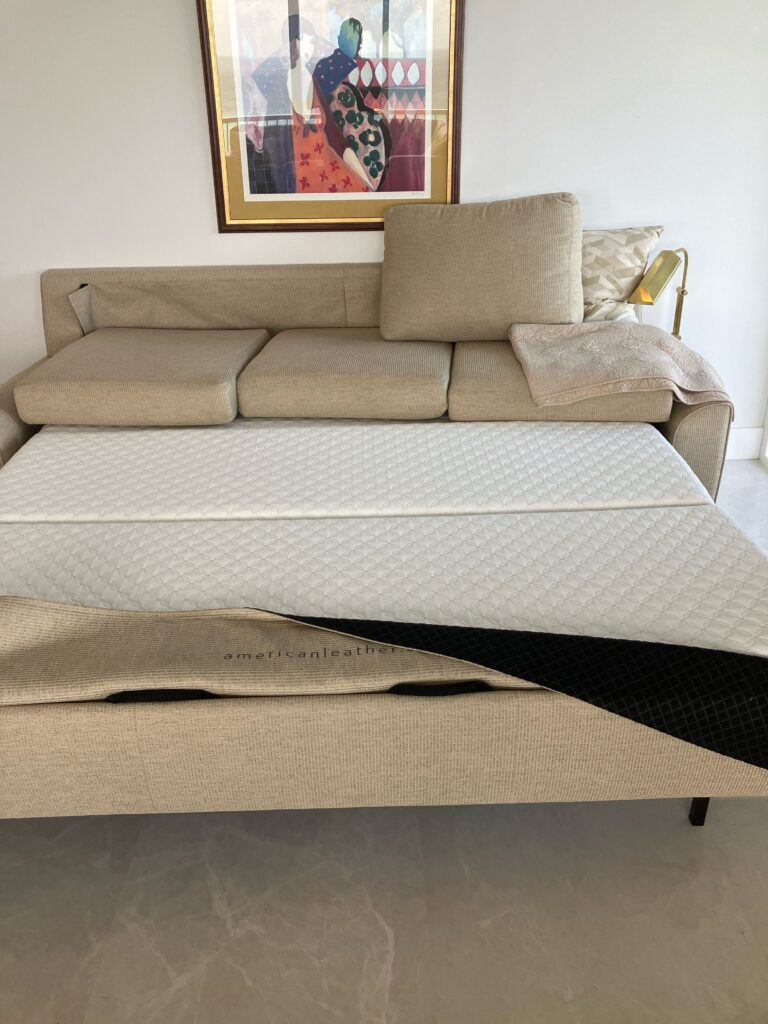 Adjusted and aligned sleeper sofa. Lubricated all moving parts – the sleeper is opening/closing intermittently. Replacing the hinge mechanisms will resolve the issue fully. The customer noted they have been sent the right and left hinge mechanisms to be installed. This will need to be set up as a new work order with 2 techs to install.